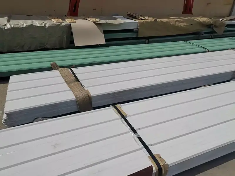 Tloušťka barevné ocelové desky je také rozmanitá. Společný rozsah tloušťky je mezi 0,3 mm a 1,2 mm. Existují také specifikace tloušťky v centimetrech, jako je 50 mm, 75 mm, 100 mm, 150 mm, 200 mm, 250 mm atd. Volba tloušťky závisí hlavně na účelu požadavků na použití a zatížení budovy. Například lehké budovy, jako jsou obytné budovy nebo malé sklady, mohou používat tenčí barevné ocelové desky, zatímco těžké budovy, jako jsou průmyslové rostliny nebo velké skladby, mohou vyžadovat silnější barevné ocelové destičky.