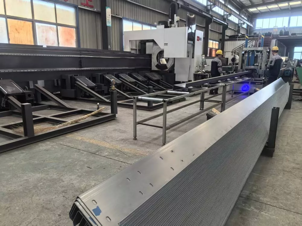 2. Děrování: Vybaveno CNC děrovací jednotkou, podporuje víceúhlové děrování stojin a přírub s tolerancí průměru otvoru ±0,2 mm a přesností rozteče otvorů ±0,3 mm. Může také současně vytvářet otvory odpovídající americkým standardním ocelovým spojovacím vzorům C-profilu (jako jsou otvory adaptéru Simpson Strong-Tie).