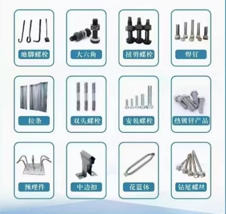 3. kotevní šrouby, také známé jako kotevní šrouby, kotevní šrouby, kotevní dráty atd., Jsou komponenty používané k připojení základny sloupců ocelových konstrukcí k betonovému základu. Během instalace je skupina kotevních šroubů upevněna ocelovým rámem a nainstalována společně s ocelovou klecí a poté se beton nalije. Hlava šroubu by měla být vystavena určité délce z betonového povrchu.