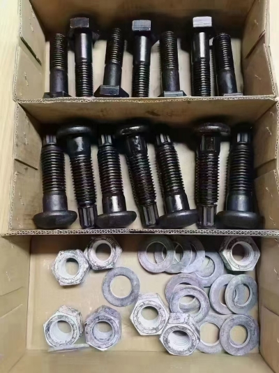1. Velké hexagonální šrouby s vysokou pevností: Pár spojovacích šroubů s vysokou pevností sestávající z vysoce pevného šroubu, matice a dvou podloží.